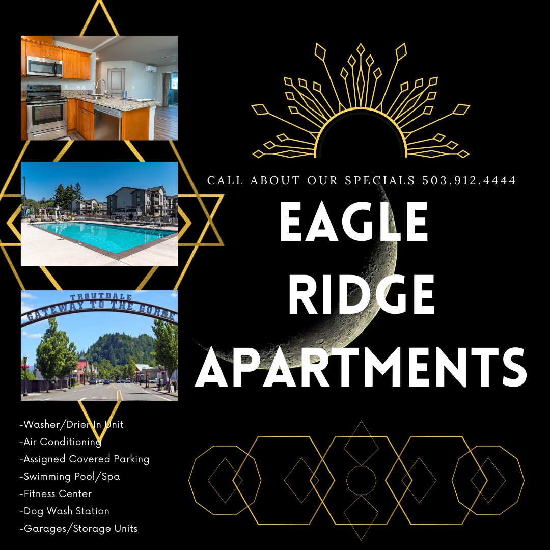 Welcome to Eagle Ridge on 242, a brand-new Troutdale apartment community. Located just minutes away from I-84, East Portland, Gresham, and Fairview. We offer more than just a place to live, Eagle Ridge on 242 offers a lifestyle. Our exceptional apartments offer contemporary interior finishes. All of our apartments feature granite counters, plank floors, shaker cabinets, full size washers & dryers, air conditioning, fireplaces, oversized closets, private back patios with extra storage, and a complimentary assigned carport.