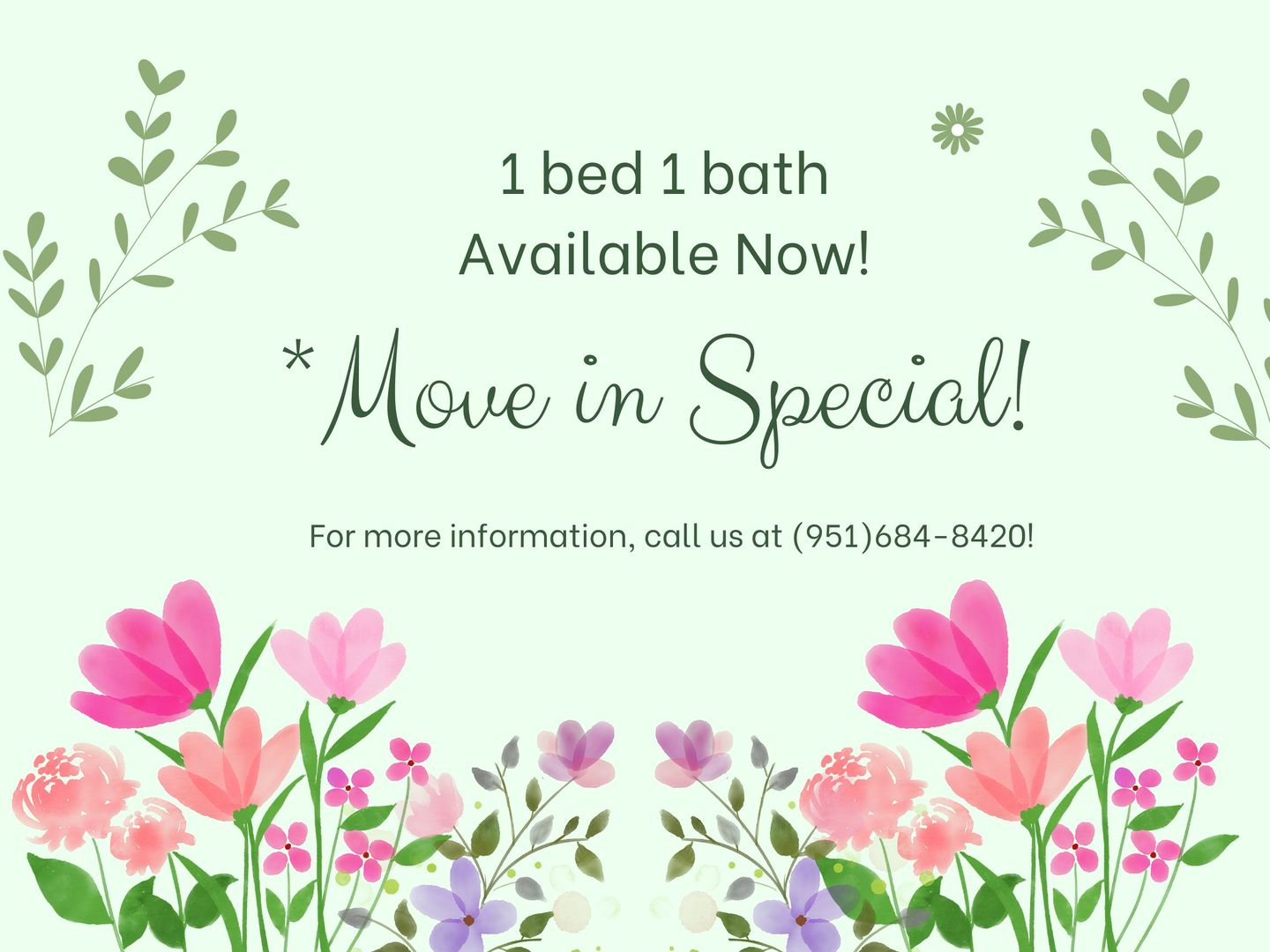 1 Bed 1 Bath Available Today! Move in Special Available! Call (951)684-8420