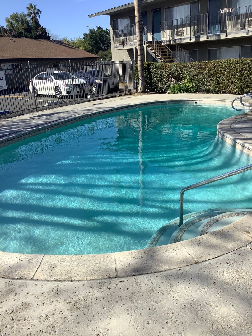 We have a one-bedroom apartment located near the pool, leasing office, mailboxes, and parking area.